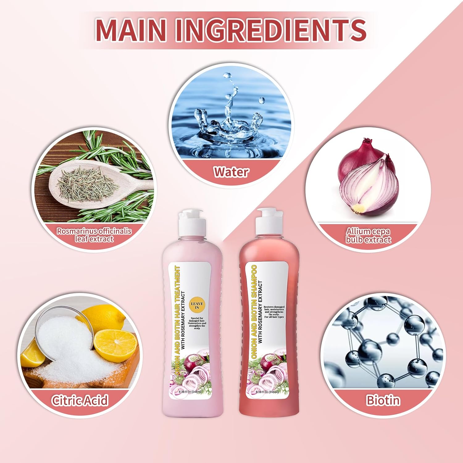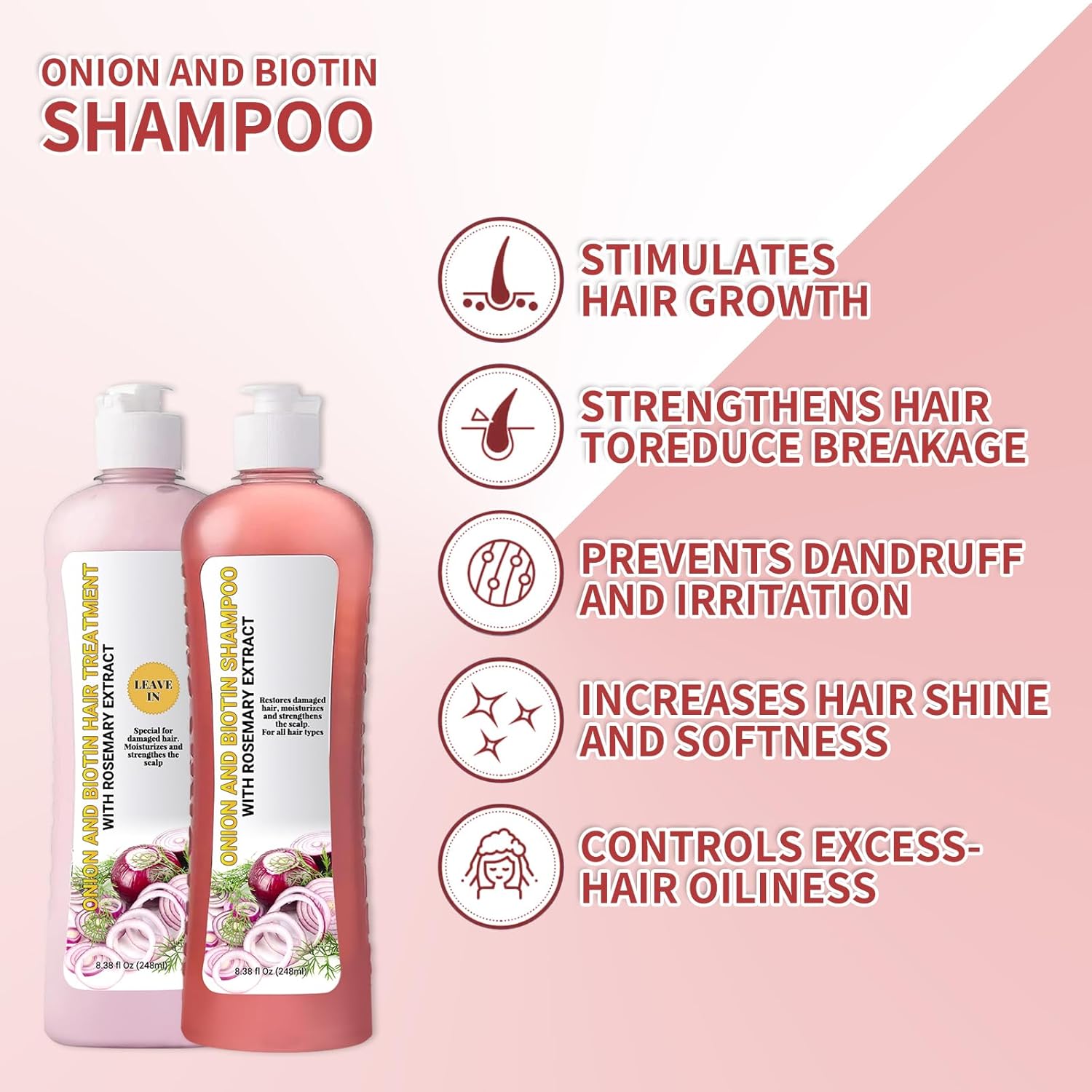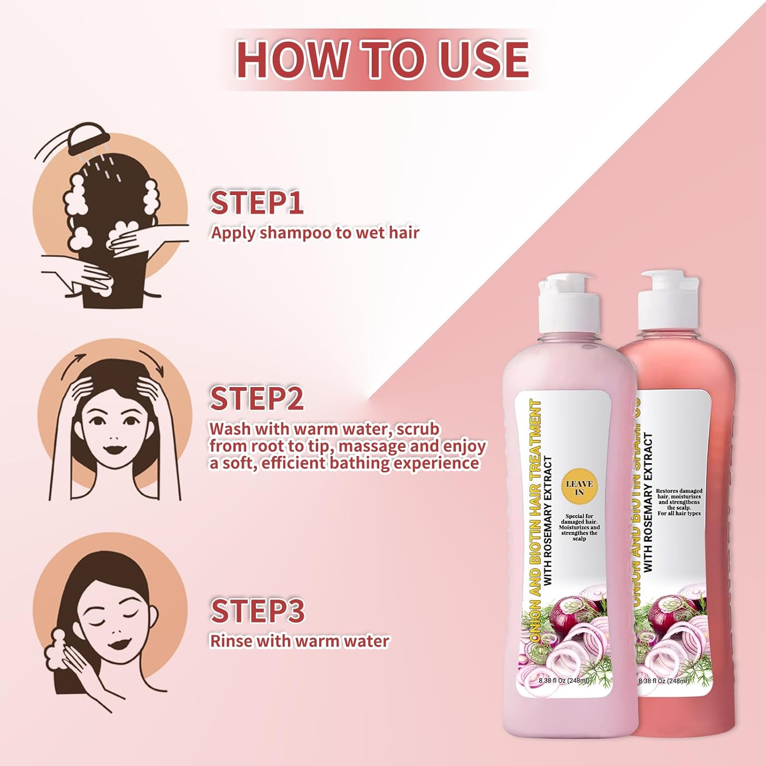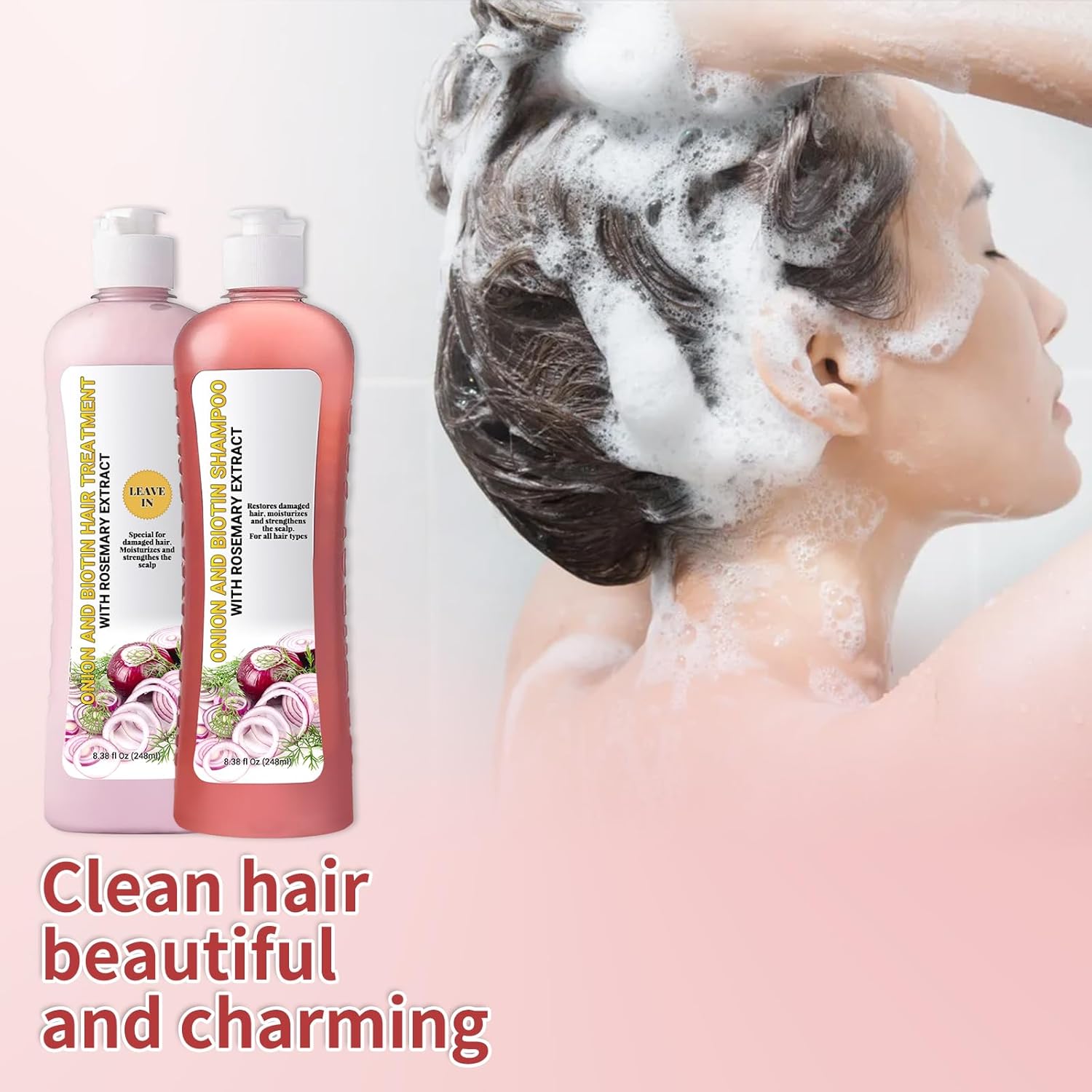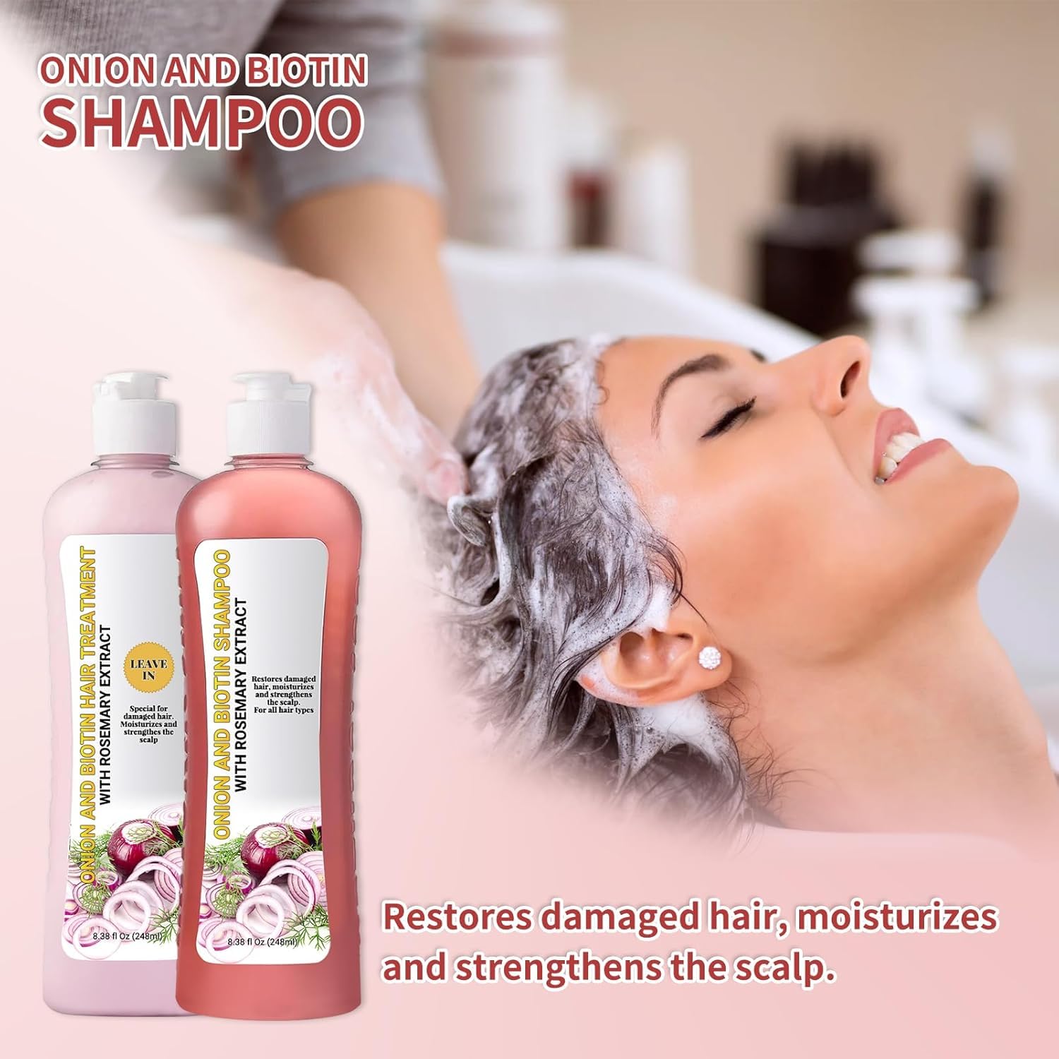 🌿Botanical Hair Care Rich in Natural Essences: QICDRTF Onion Biotin and Rosemary Shampoo Treatment Set Infused with a careful selection of botanical extracts such as onion extract, rosemary, and biotin, our shampoo offers a gentle cleanse for your hair. It is meticulously formulated to respect and maintain the natural balance of your scalp, providing a soothing and effective hair care solution.