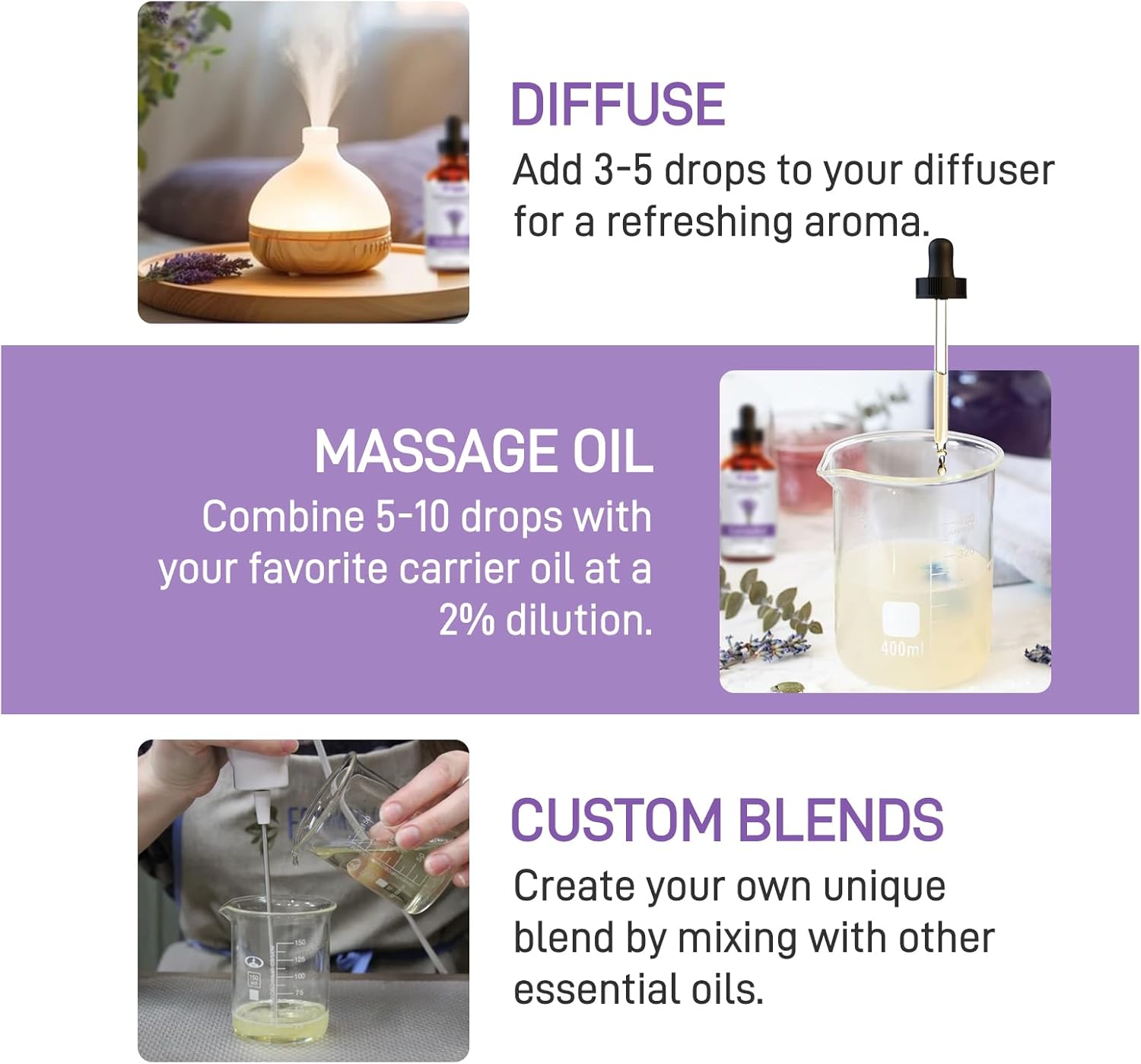 HIGH QUALITY GLASS BOTTLE – Our Essential Oil comes in an amber glass bottle to keep out UV rays and protect the oil against sunlight. It has a built-in dropper to control the flow and get the exact amount of oil without any waste