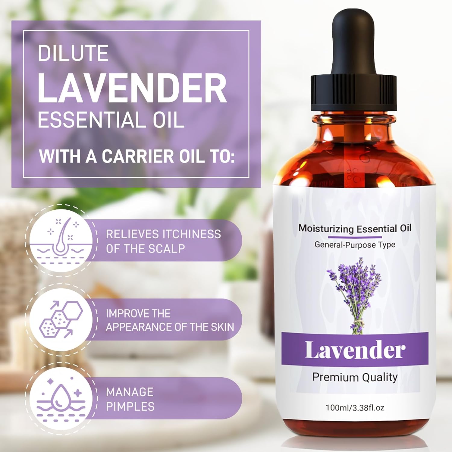 PREMIUM GRADE & QUALITY: Lavender Oil is widely used for hair and scalp massage. Before using Lavender essential oil for hair, always dilute it with suitable carrier oil since it is highly concentrated. To use Lavender oil for scalp and hair, simply mix a few drops of Lavender oil with your shampoo, conditioner, and mask and use regularly